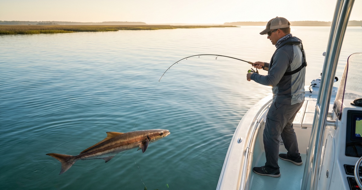 A word on safety: Cobia fishing often takes you well outside inlets into exposed coastal water. Check the marine forecast before launching and take it seriously — a 2-foot sea can build to 4–5 feet quickly when a front moves through. If you're running offshore or into exposed areas, file a float plan with someone onshore before you leave.